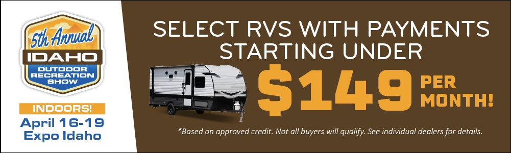 For 4 days only, shop from 100s of new RVs from Idaho’s largest RV Dealers, all in 1 location. See travel trailers, fifth wheels, motorhomes, toy haulers, and more! Plus, Boats too!